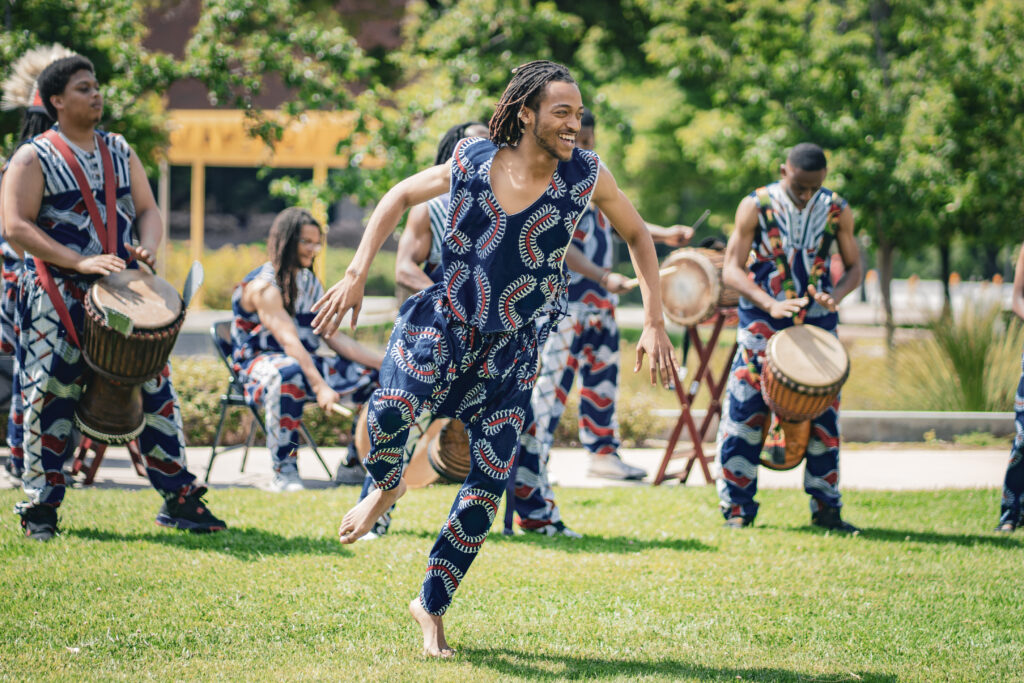 The Department of Dance is a co-host and co-producer of the Inland Empire’s Ultimate Doundounba Festival, a weekend-long festival of West African dance and drumming workshops, performances, lectures, and film screenings. The festival is organized and directed by Dance lecturer Makeda Kumasi in partnership with the Umoja Ensemble of the Inland Empire through WE 3 PRODUCTIONS and “We The People” Cultural Dance Center. Kumasi, who teaches DNCE 66ABC: West African Dance, works with undergraduate and graduate students, staff and various community members to bring the event to campus.