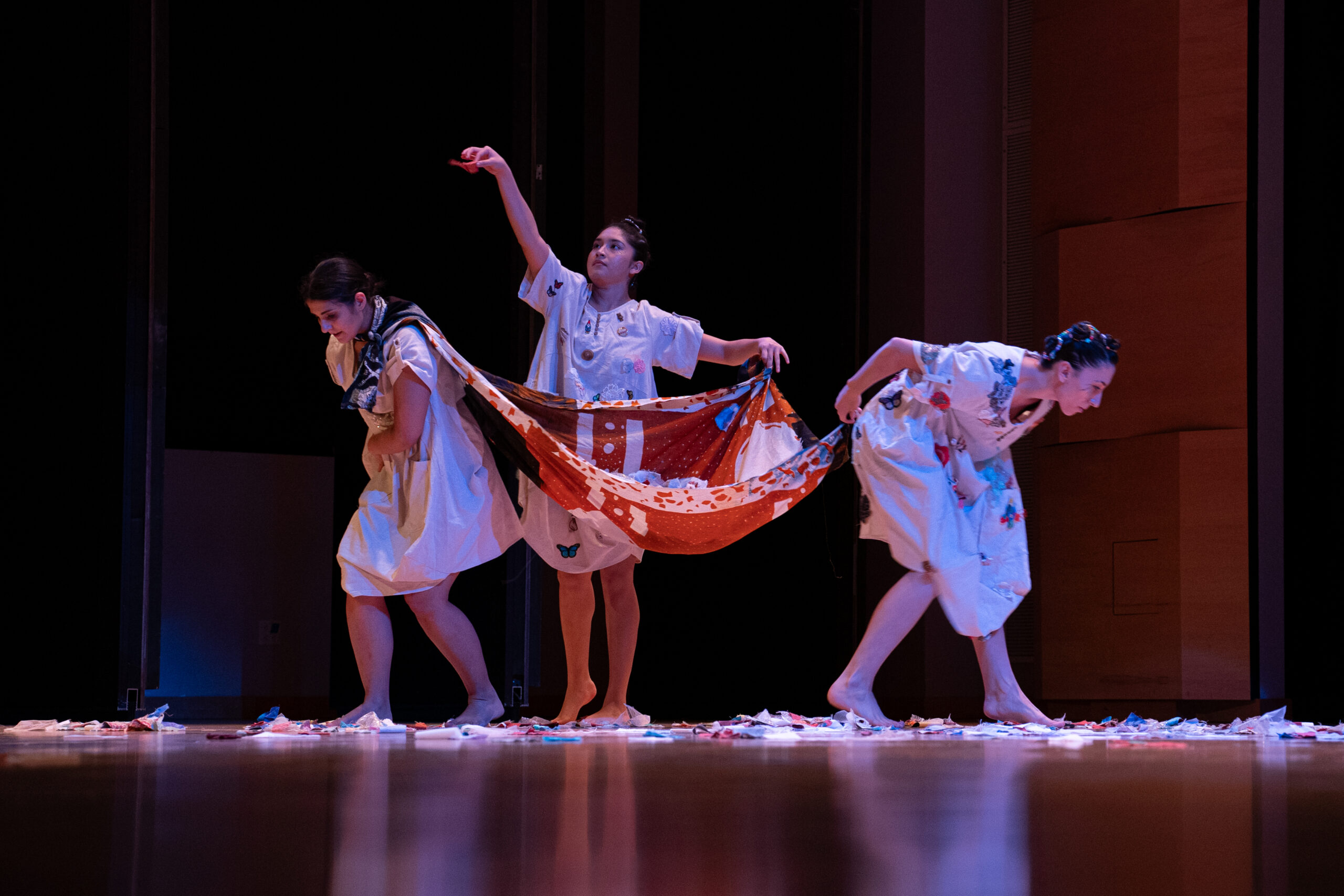 The M.F.A. Final Project/Performance may take shape in multiple ways: an interdisciplinary live -installation, an evening of dances, a digital media project, a series of events over the course of several months, a site-specific work on or off campus, a ritual gathering or protest event, or some other performance in which the student’s research is made evident. M.F.A. Final Projects  reflect a strong consideration of their coursework and committee mentorship and are presented every spring quarter. (Photo Credit: Jonathan Godoy)